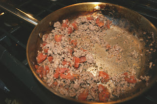 For the mushrooms, I dug around in the freezer and came up with ½ pound of ground beef. I’d packaged it to use in spaghetti sauce, but we hadn’t eaten spaghetti in months, and being on a low carb diet, we had no plans to start. I combined the ground